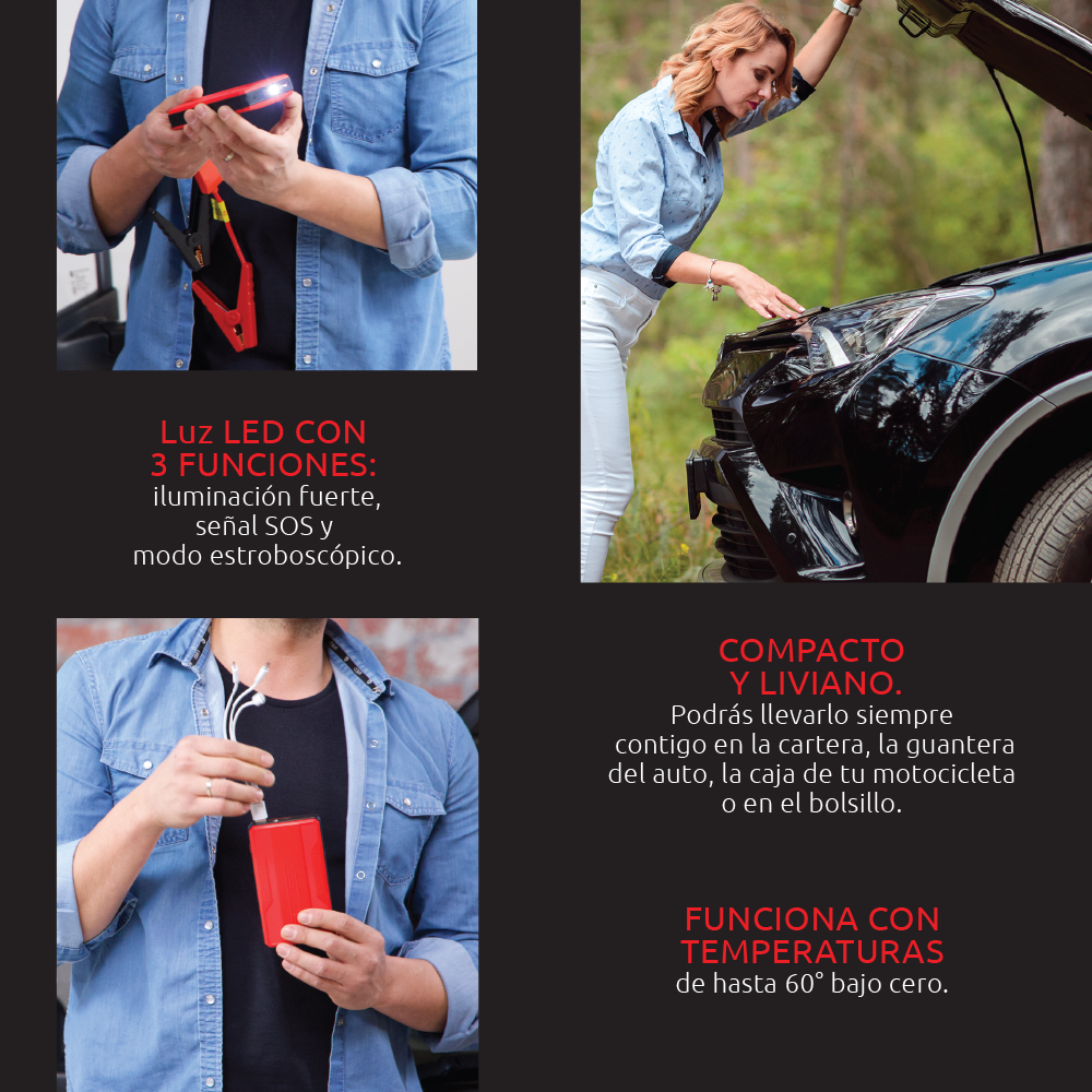 - 🚗 Arranca tu vehículo en segundos – ideal cuando la batería está descargada