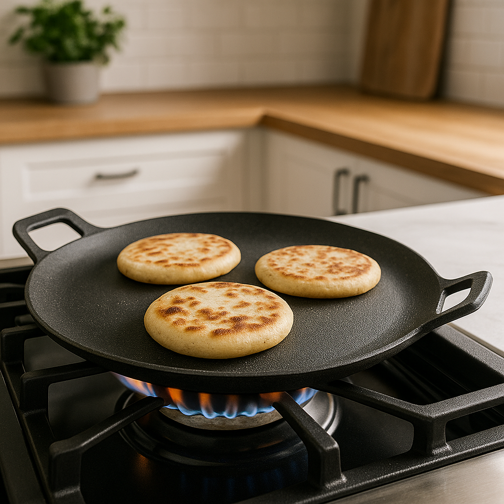 • 🍞 Calor uniforme – Cocina perfecto por ambos lados: arepas, panqueques, tortillas, etc.